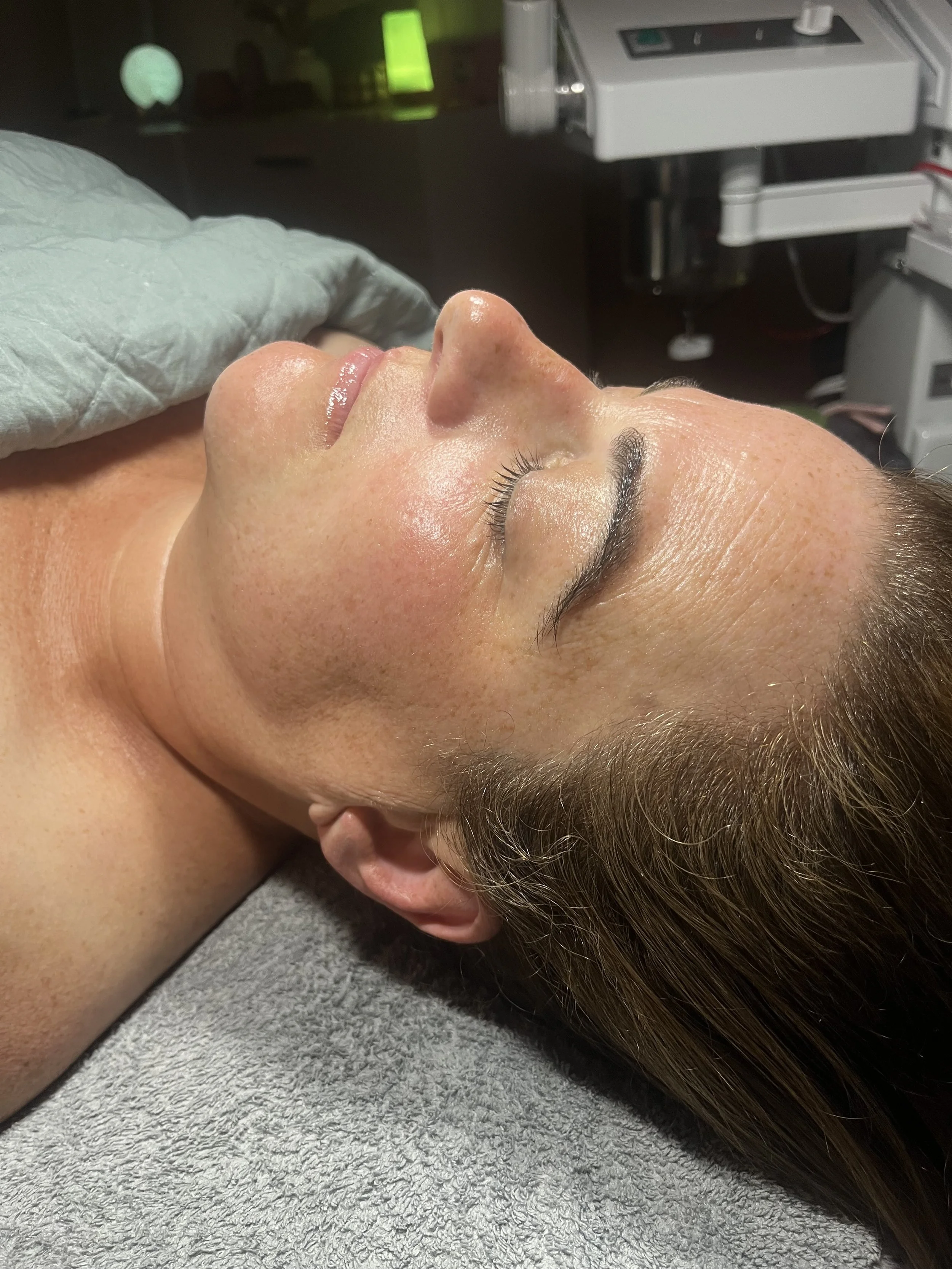 Experience rejuvenation with our anti-aging facial treatment, designed to reduce the appearance of fine lines and wrinkles. This service utilizes advanced techniques and nourishing ingredients to restore your skin's youthful glow and vitality. Includes a gentle double cleanse, face, neck, shoulder, and décolleté massage with Gua Sha, diamond microdermabrasion (if appropriate - best results when performed in a series of 6), Australian Sheep Placenta Jelly mask, yellow LED light therapy, moisturizer, SPF, and a hydrating lip treatment.
