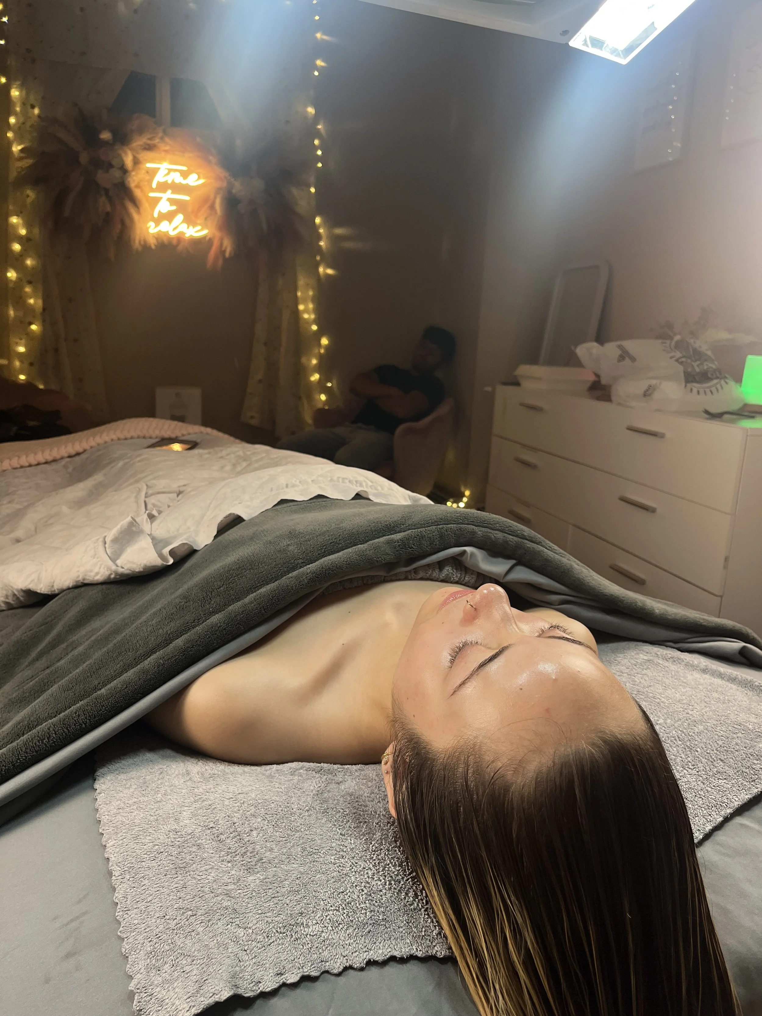 Bi-weekly 20 minute LED light therapy with hair play or a bi-weekly brow and lip wax
