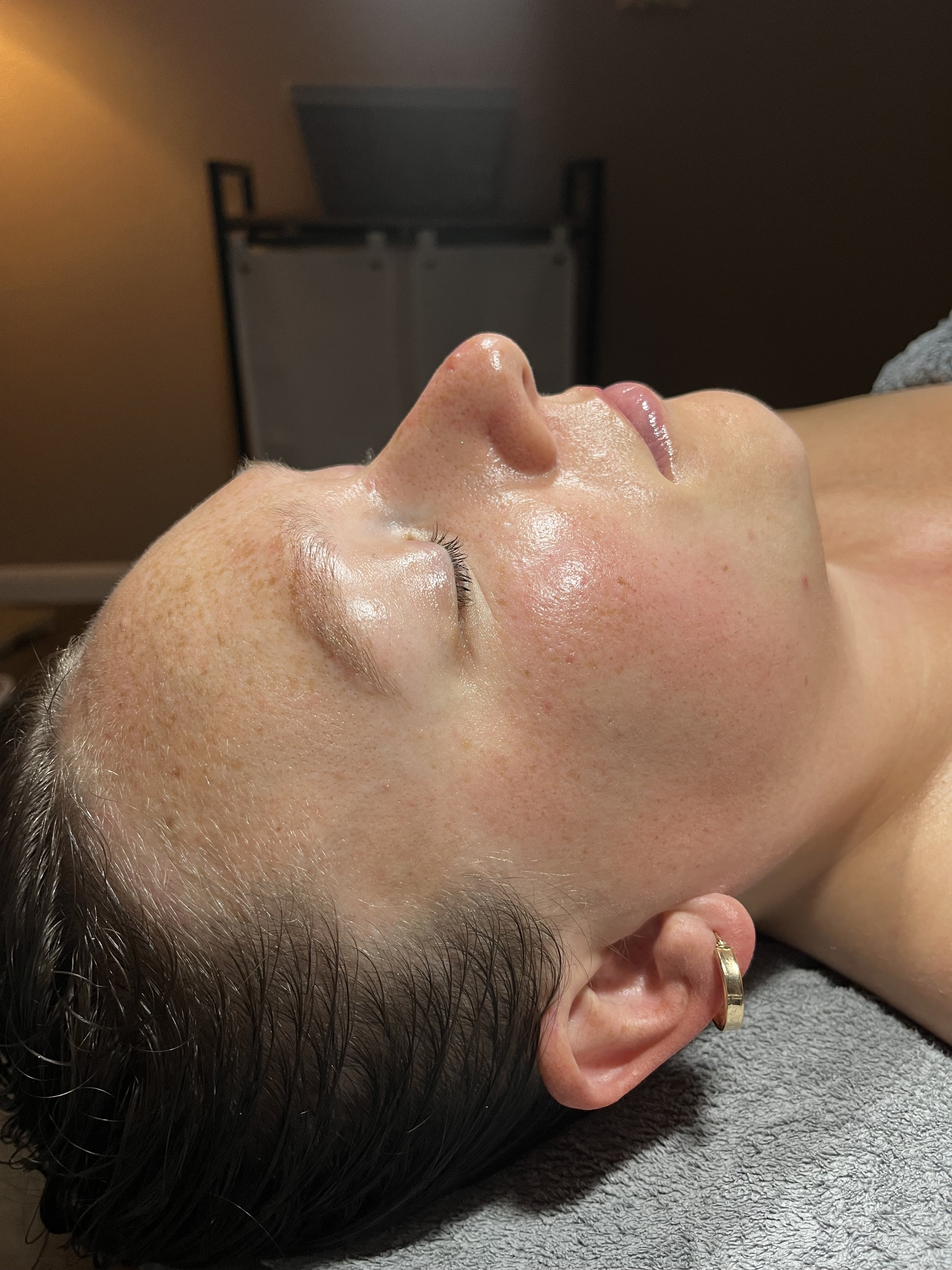A hydrating mask is then applied, followed by moisturizer, SPF, and a nourishing lip treatment. Carefully selected skincare products work to heal, soothe, and rejuvenate your skin from the inside out.